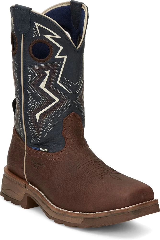 Dark Brown and Deep Blue Waterproof Composite Toe Force Work Boot.