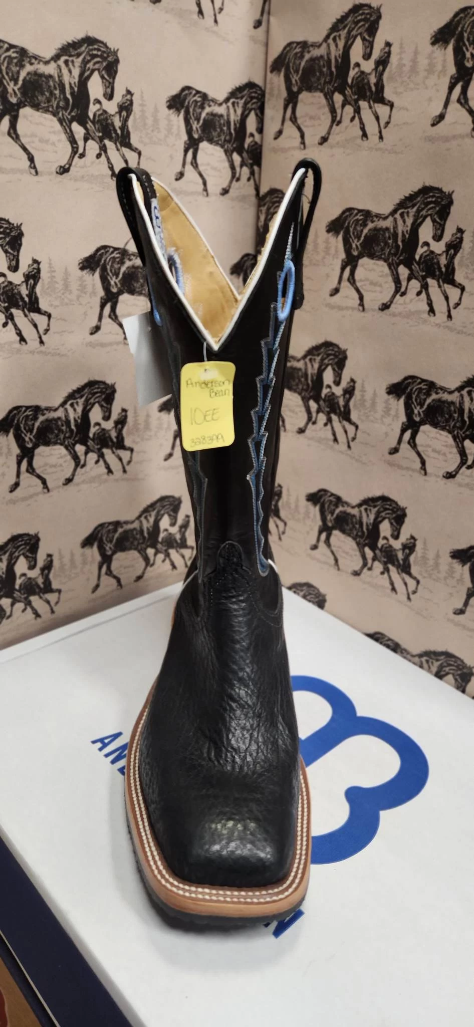 Black Shark Western Boot with Blue Stitch Detail.
