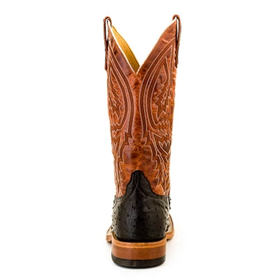 Black Full Quill Ostrich and Rust Lave Western Boot.