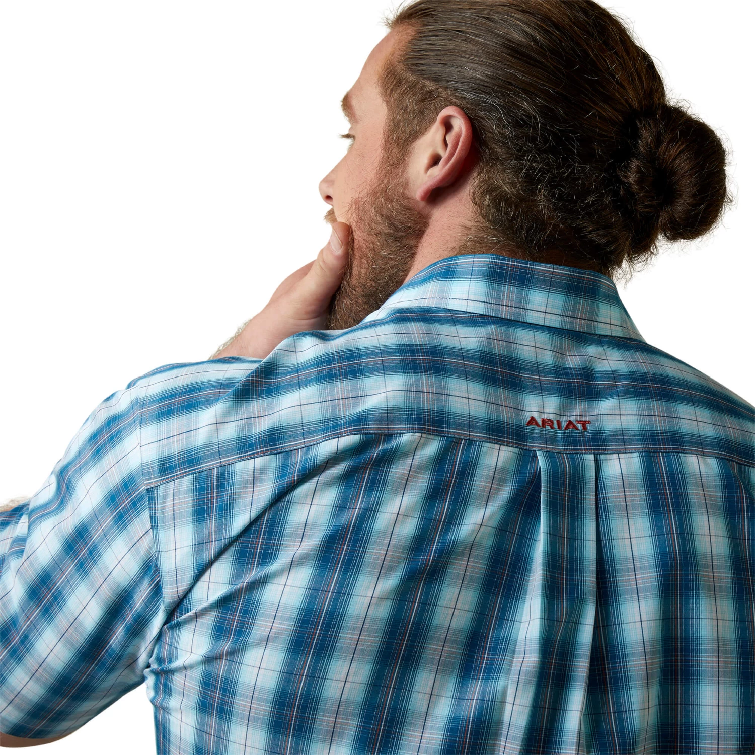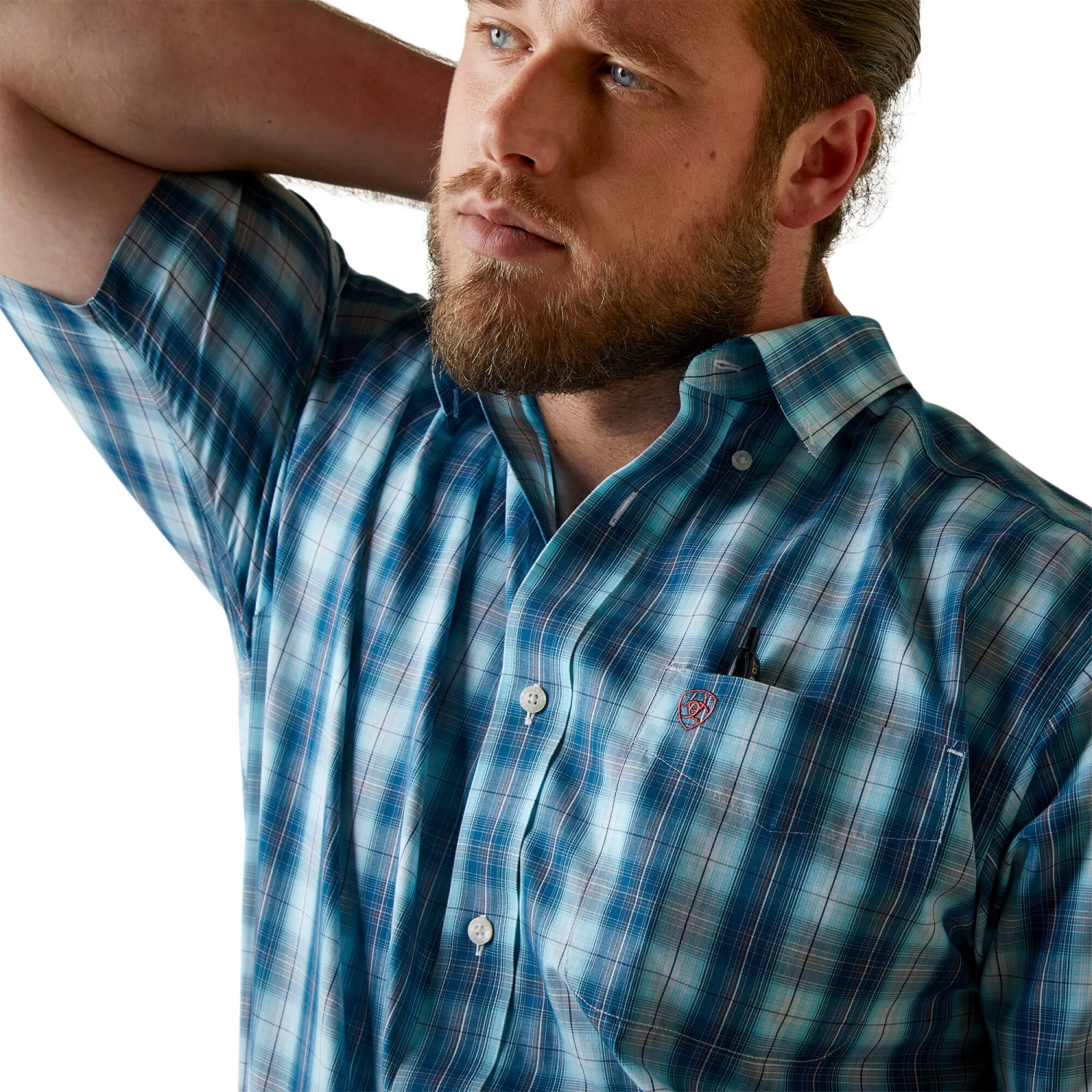 Blue Mist Plaid Short Sleeve Wrinkle Free Enzo Classic Fit Button Down Shirt.