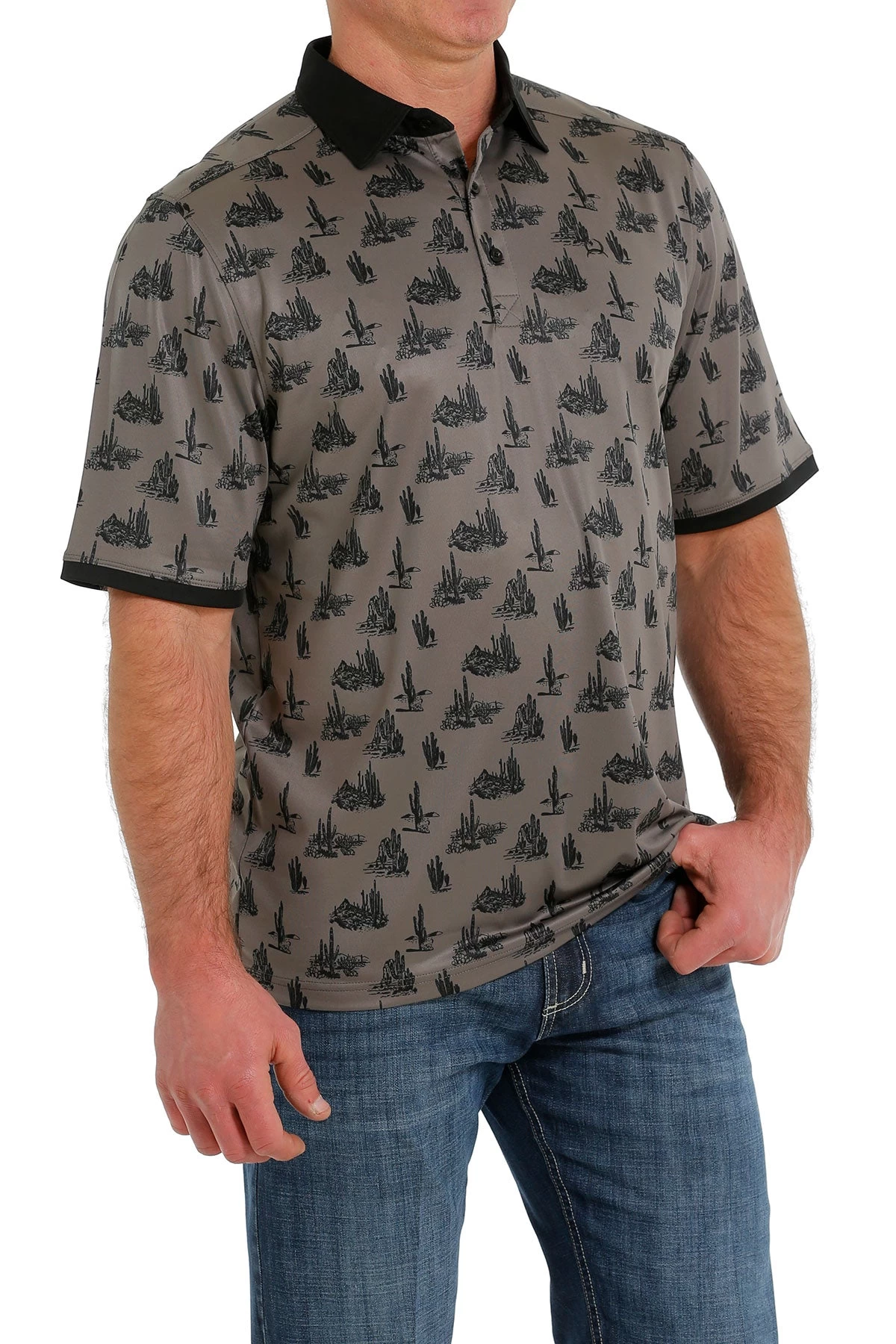 Grey with All Over Cactus Print Short Sleeve Arenaflex Polo Shirt.