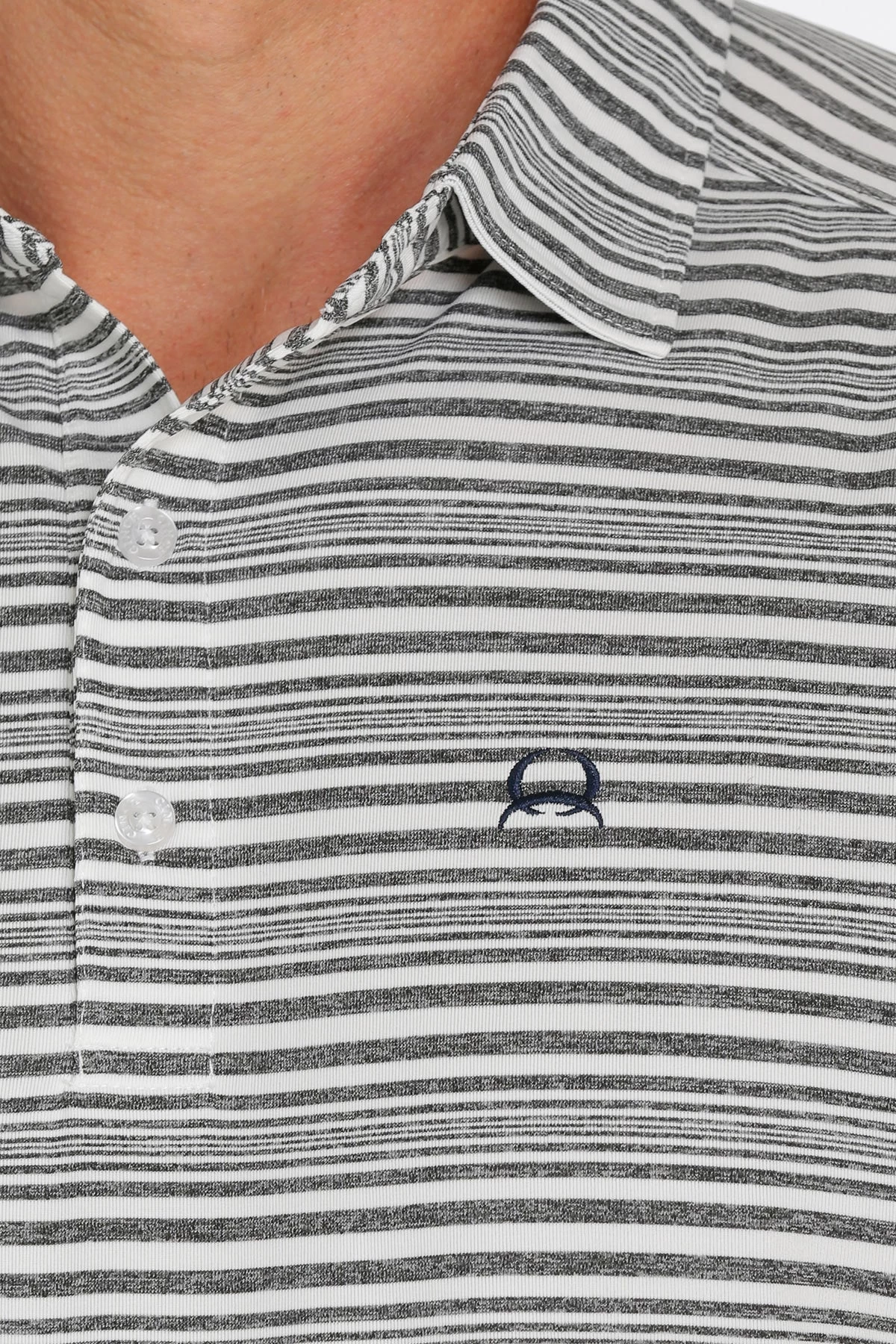 Navy and White Stripe Short Sleeve Arenaflex Polo Shirt.
