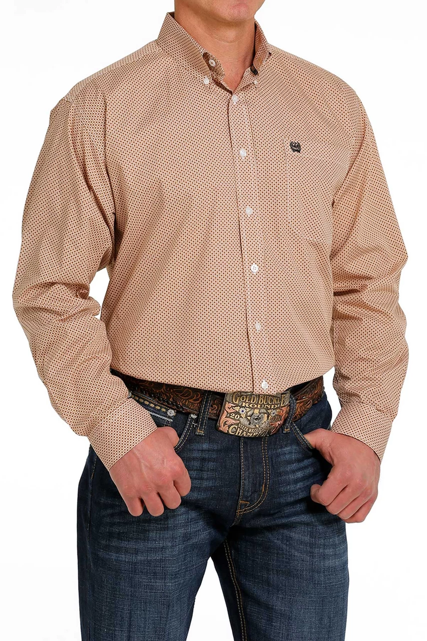 Cinch Men’s Brown With Dots Button Down Long Sleeve
