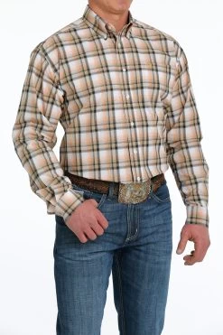 Khaki with Cactus and Skull Desert Print Short Sleeve Button Down Shirt.