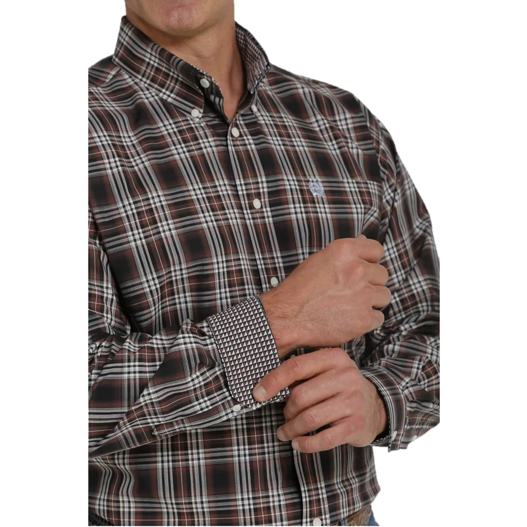 Cinch Men’s Black & Brown Plaid Button Down Long Sleeve