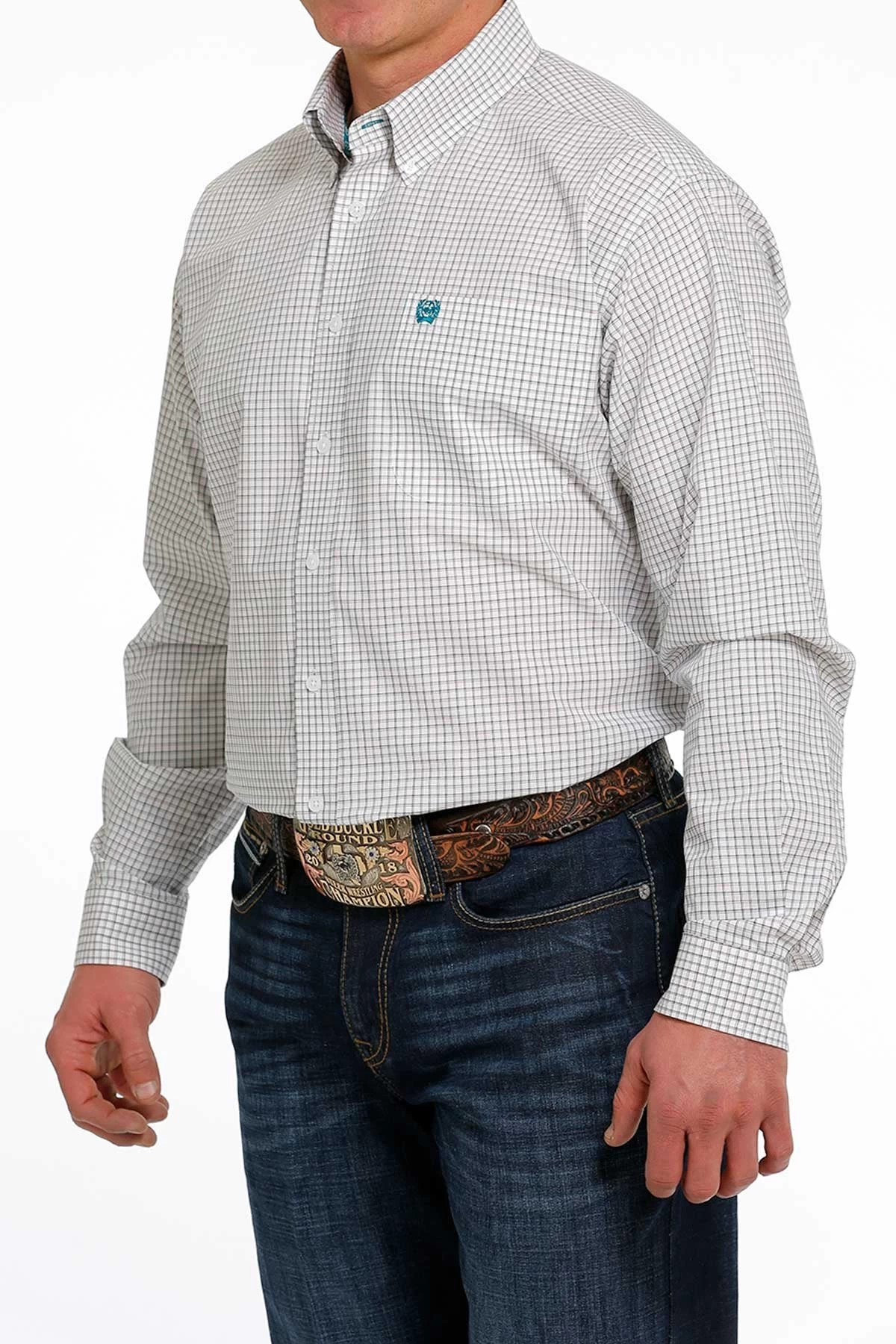 Cinch Men’s White Plaid Button Down Long Sleeve Shirt