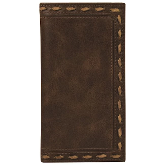 Stage Coach Dark Brown Rodeo Wallet with Natural Bone Rawhide Whip Stitch.