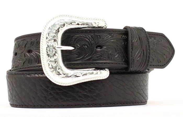 Men’s Black 1 1/2″ Bullhide Belt with Embossed Ends. Belt Buckle is Removable.