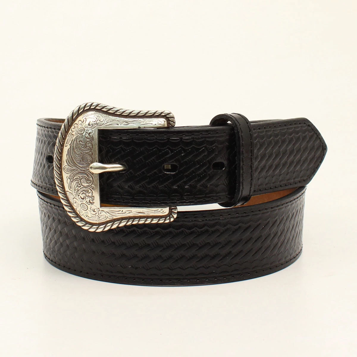 Black Basket Weave Embossed Belt.
