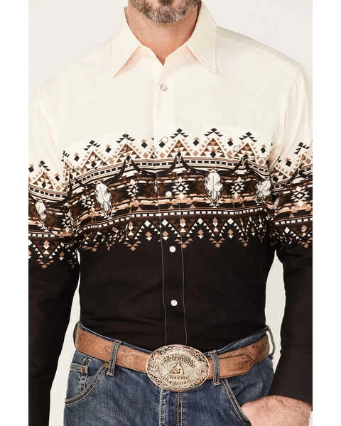 Panhandle Men’s Natural & Black Aztec Border Snap Long Sleeve