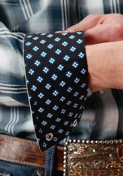 Roper Men’s Blue Plaid With Stripes Snap Long Sleeve