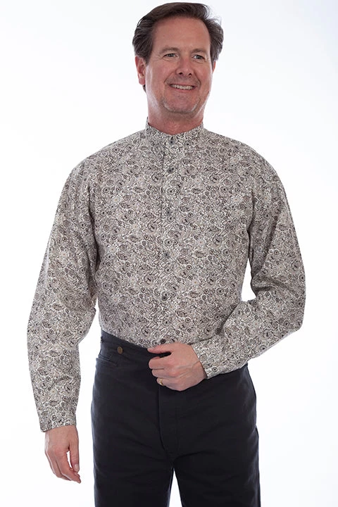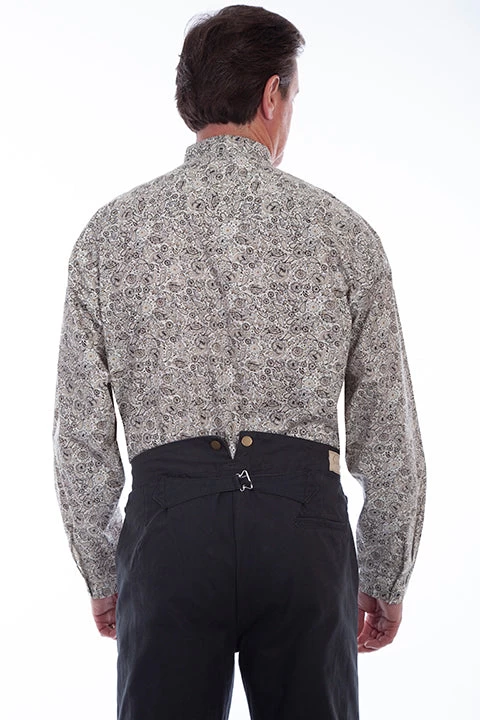Brown Paisley Long Sleeve Button Down Shirt.