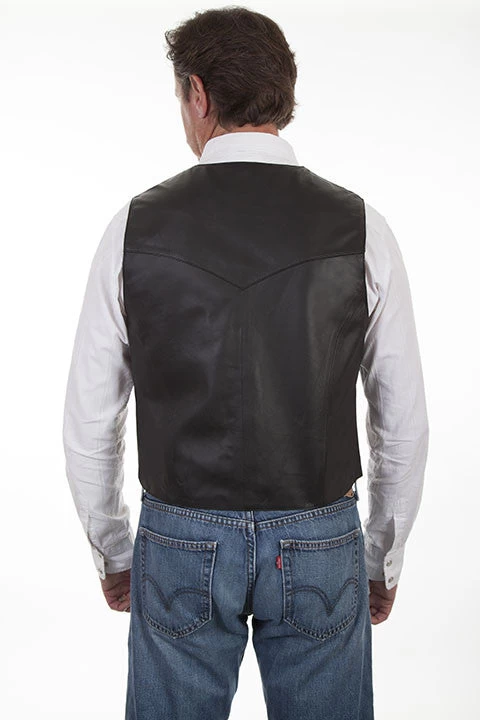 Black Lambskin Leather Snap Front Vest.