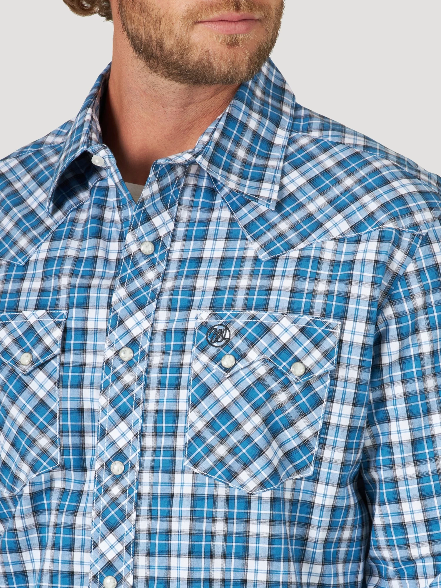 True Blue Plaid Long Sleeve Snap Front Shirt.