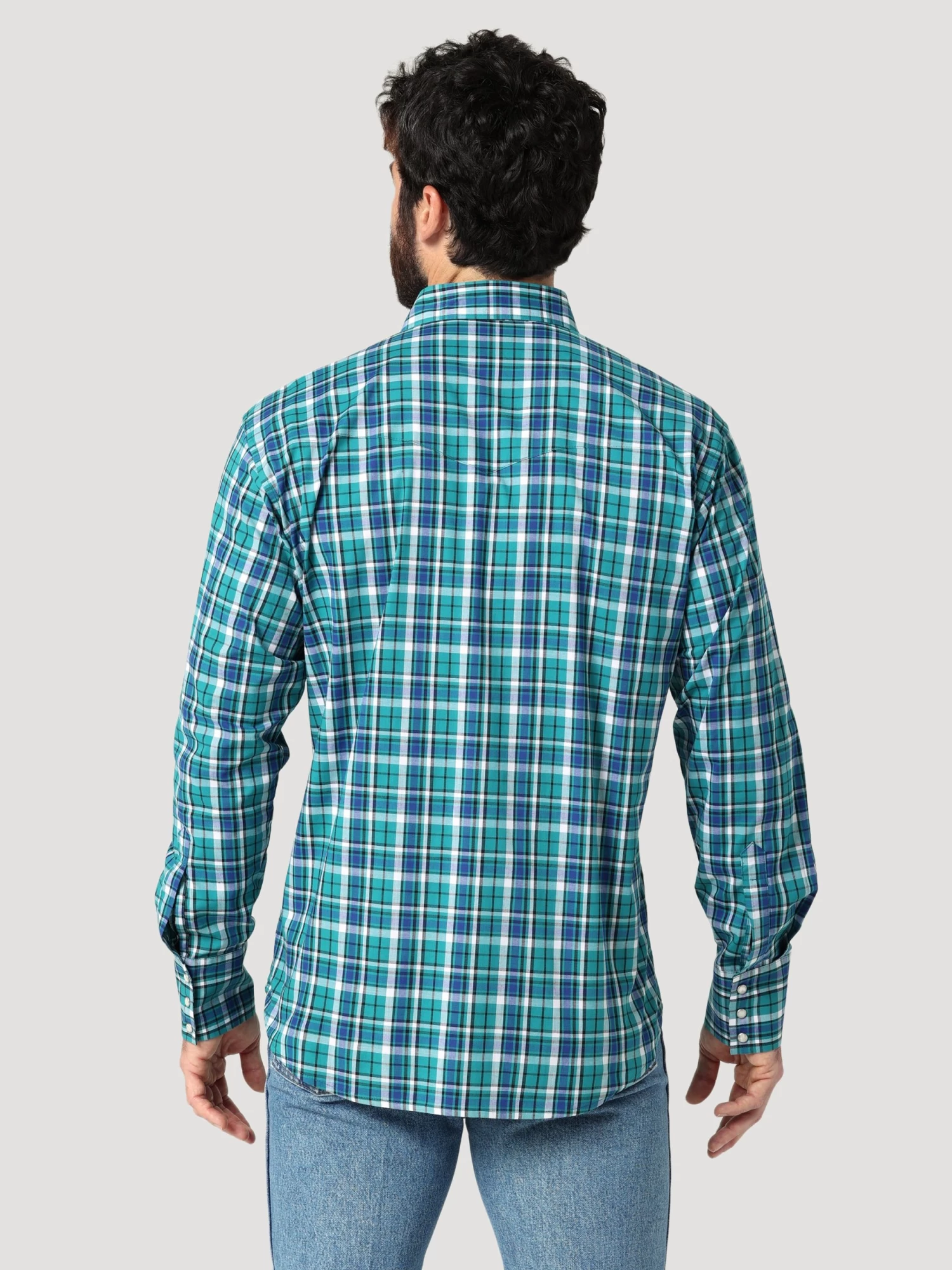 Teal Long Sleeve Wrinkle Resist Relaxed Fit Snap Front Shirt.